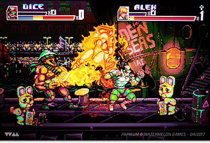 Year 8A2, somewhere at equidistant point between Shanghai, Tokyo and Pyongyang, a Megapolis rose from ashes of the shortest but most devastating nuclear war in history, its name is PAPRIUM. BRUTAL, MASSIVE. You will fight your way through the city with Tug, Alex and Dice. Redefine the word justice, deal with the BLU drug temptation, and more importantly: STAY ALIVE!
