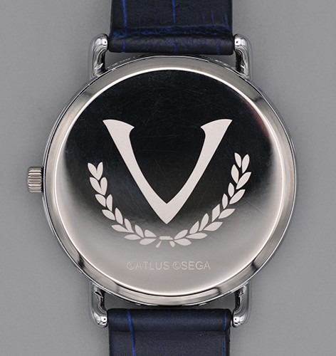 The Persona 3 watch comes in a unique box that features the game’s logo. In addition, the watch features detailing made with gold and lapis lazuli. The details don’t end on the front, however. The back of the watch features an engraved “V” surrounded by laurels. This authentically captures the look of the elevator used in-game to transport the player to the Velvet Room.