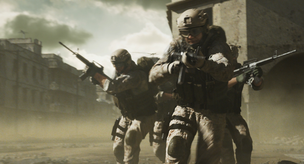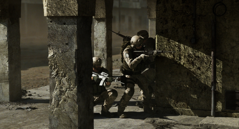 This scene is set six years earlier (in 2000) in the city streets of civil war-ravaged Penamstan, where bullets fly. When a U.S. special forces helicopter falls from the sky, the U.S. Army Mad Dogs, led by Jason, refuse orders from the command center to stand their ground. Instead go to save the survivors left stranded on the battlefield.