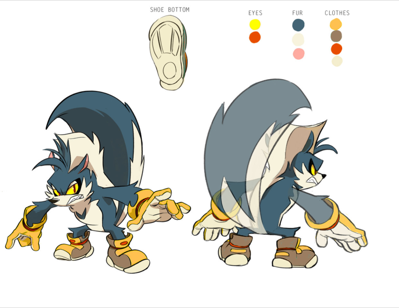 Ian [Flynn is] pretty much able to come up with folks on the fly and any major characters we run by Sega for approval. There are a few stages, from Ian’s initial paragraph or two description of the character, to getting someone like Tyson Heese to draw up designs and turnarounds for Sega to see the character, to having a final design and solidifying their personality in the script.